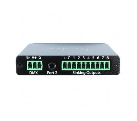 - Eight low-voltage sinking outputs (for LEDs, relays, lamps)